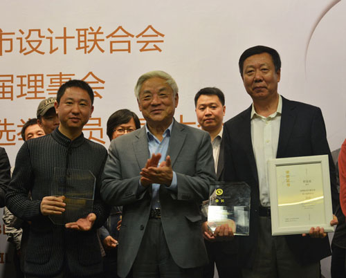 图二:中国工业设计协会会长朱焘为新当选的任克雷任会长、